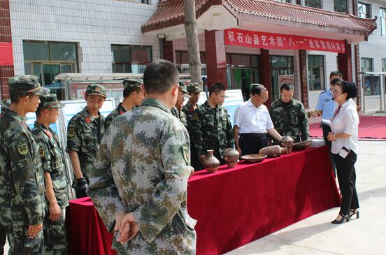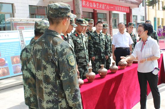 此次进军营活动受到官兵们的热烈欢迎,纷纷表示获益匪浅,积石山县博物馆不仅要把群众请进来,还要主动把展览送出去,让“躺”着的历史走出去,使文化发展成果惠及更多百姓。也让官兵们了解第二故乡的深厚文化,也更加激发了他们对第二故乡的热爱之情。本次“博物馆送展览”进军营活动通过实物展示和展板展览的形式进行。旨在传承、弘扬积石山县优秀的传统文化,丰富部队官兵的精神文化生活,宣传我们的文物保护工作,建立深厚的馆军友谊。”