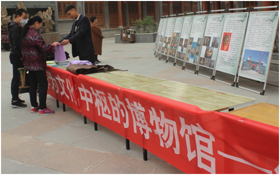 今年国际博物馆日的主题为“作为文化中枢的博物馆——传统的未来”。此次宣传活动紧紧围绕这一主题,通过设立咨询台、发放宣传册、悬挂横幅、发放《文物保护法》和《博物馆条例》彩页等形式对法律法规进行了宣传,并通过展板的形式向参观的行人讲解积石山博物馆文化,让行人们了解积石山的彩陶文化、保安族腰刀文化和保东撒三个民族的民居、饮食、服饰的相同点和不同点,同时通过赠送文创毛巾、文创手提袋、文创围裙的方式向游客推荐公众号,从而让博物馆文化得到了更好的宣传,也得到了游客的喜爱和肯定。