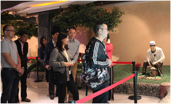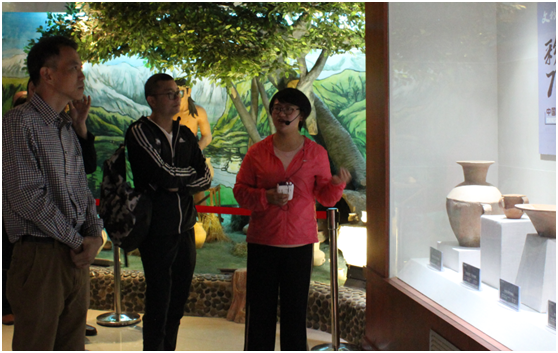 参观过程中,讲解员详细的讲解了保安腰刀展厅中保安腰刀的的锻造过程和各种刀具,历史文物展厅中彩陶王的由来和彩陶文化,民俗文物展厅中保安族、东乡族和撒拉族的服饰、饮食等各方面的相同点和不同点。
