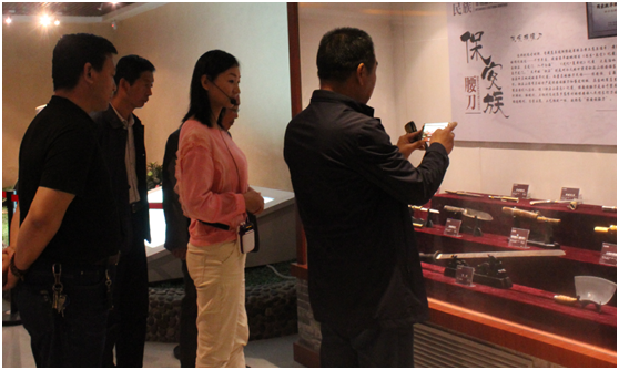 参观过程中,甘肃民族师范学院一行详细询问了积石山的民族文化、民俗风情等,对展出的精美文物给予了高度评价,尤其是参观完民俗文物展厅后,对于保安族、东乡族和撒拉族的民居、服饰、饮食文化产生了浓厚的兴趣,对制造出保安腰刀的传承人给予了肯定,对于保安腰刀锻制技艺这一国家级非物质文化遗产的传承相当重视和关心,对于保安腰刀的销路也提出了宝贵的意见和建议。