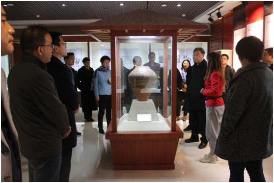 袁争处长一行参观了历史文物展厅,在讲解员的介绍下,了解了积石山县三坪村出土的彩陶,被誉为中国的“彩陶王”,为国家一级文物,现藏于中国国家博物馆。在保安族腰刀展厅中知道了保安腰刀锻制技艺的传承谱系、锻制工序和各类的刀具。在参观民俗文物展厅时详细询问了积石山县的民族文化、民俗风情等,对展出的精美文物给予了高度评价,对于保安族、东乡族和撒拉族的民居、服饰和饮食文化产生了浓厚的兴趣。