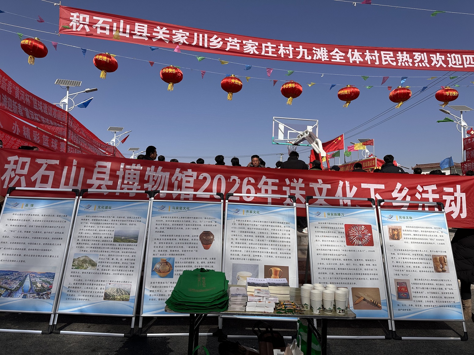 为推动文博资源下沉基层,让文物活起来、群众舞起来,积石山县博物馆依托关家川乡九滩村篮球赛举办契机开展文化下乡活动,将文博服务、文艺展演与新春送春联民俗祝福送到乡村赛场,以“体育+文化+民俗”融合形式为基层群众送上丰富的文化盛宴,切实延伸文博服务触角,践行文化惠民初心。