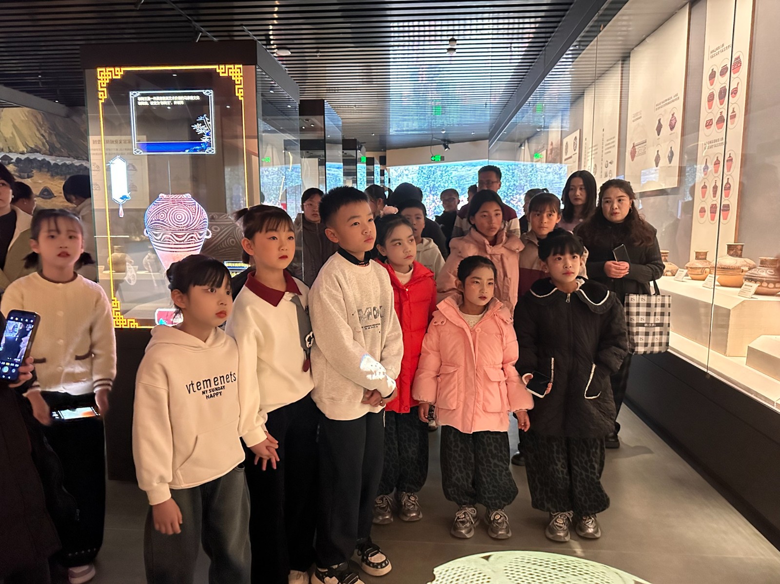 本次活动内容丰富、形式多样,将文博参观、文化体验与艺术展演有机融合,让青少年在新春佳节来临之际,近距离感受历史底蕴、民俗魅力与时代风采。活动中,讲解员带大家先后参观《抗震救灾纪念展》、《大河淘珍展》、《民俗展》、《非遗展》。通过实物、图片、场景复原及多媒体展示,使学生们深刻感受彩陶文明的源远流长、民俗文化的绚丽多彩、非遗技艺的匠心传承,以及在抗震救灾历程中全县人民众志成城、守望相助、迎难而上、感恩奋进的精神力量,进一步增强文化自信、家国情怀与家乡认同感。