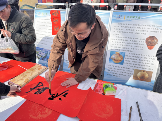 为深入推进文化惠民工程,传承中华优秀传统文化,让乡村群众在笔墨书香中感受马年新春的喜庆氛围,2月10日,积石山县博物馆在朝阳社区开展以“彩陶故里 骏马送福”为主题的送春联下乡活动,将满满的新春祝福与厚重的文化底蕴送到群众家门口。